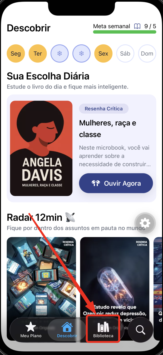 Acesse o menu Biblioteca (Library).