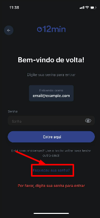 Neste artigo, você vai aprender como criar uma nova senha no 12min em duas situações: quando já está logado no aplicativo e quando não consegue acessar a conta.
