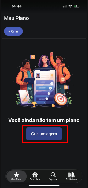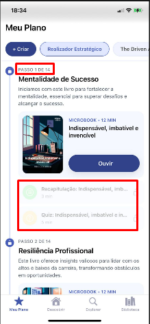 No menu Meu Plano, você cria um plano personalizado de desenvolvimento, baseado nos seus objetivos e desafios atuais.