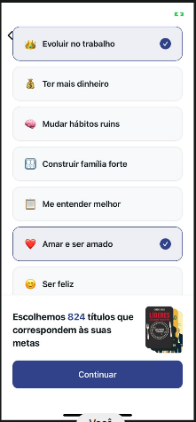 Em poucos passos, o app entende o que você quer melhorar e monta uma jornada sob medida para você 🎯
