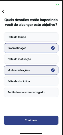 Selecione as opções que representam suas maiores dificuldades e toque em “Continuar”.