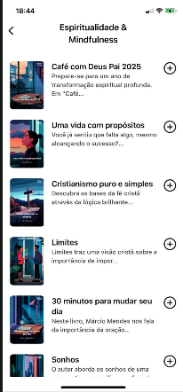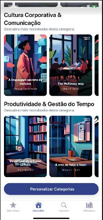 Ao continuar descendo a tela, você verá microbooks organizados de acordo com categorias de sua preferência.
